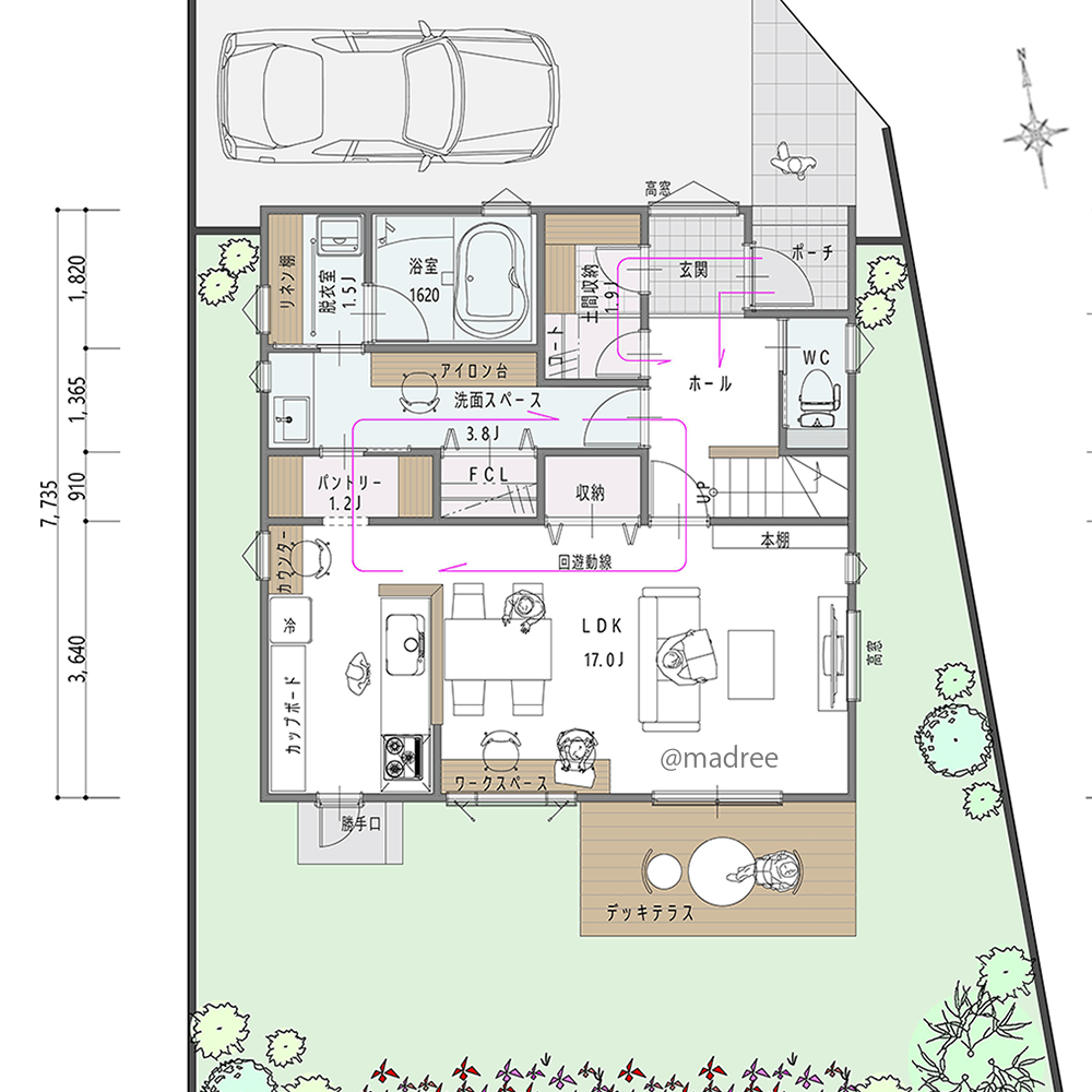 [32坪 4LDK] 四季を感じるワークスペースで、気持ち穏やかに在宅時間過ごす家の間取り