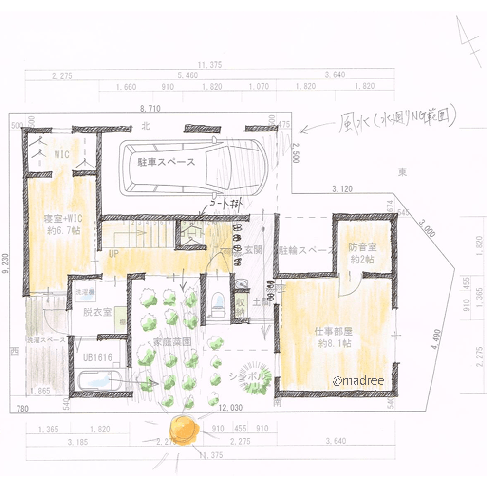 ・家庭菜園は、日が当たりの良い南北に奥行を取って計画しました。
