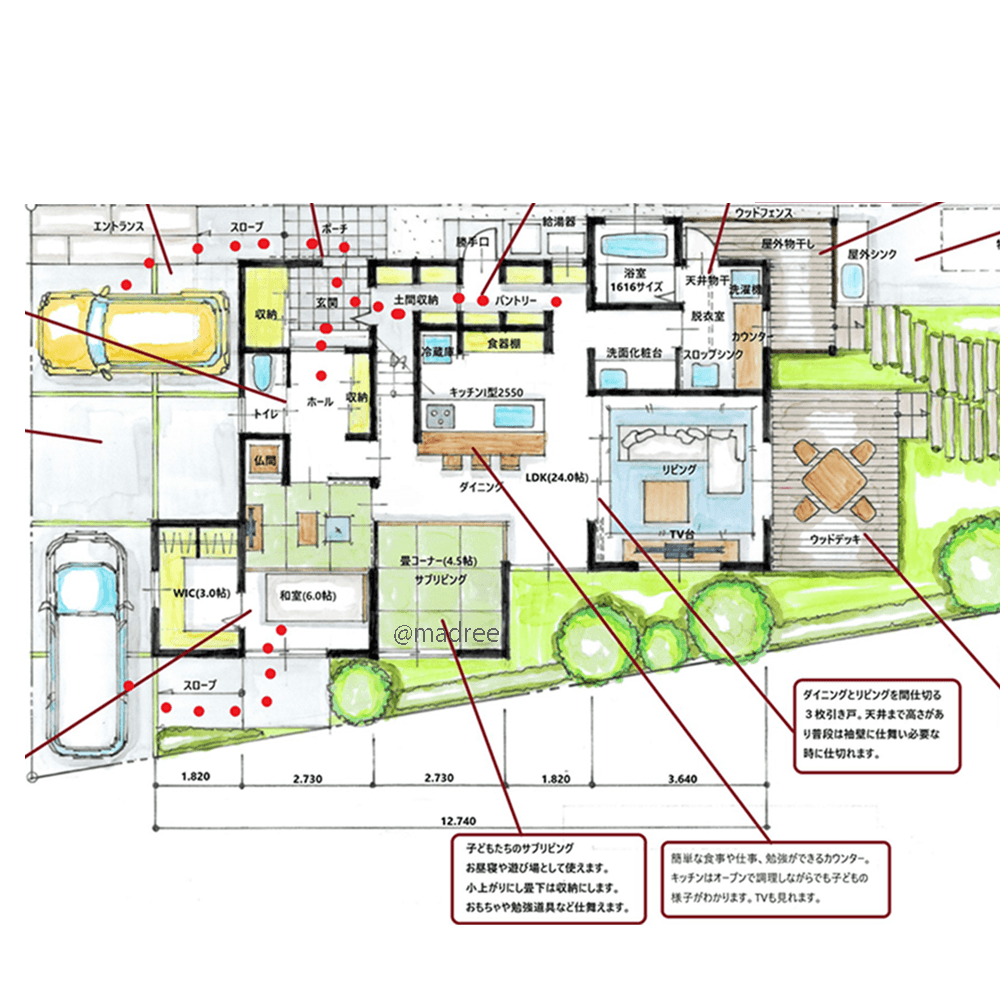 ・将来的に車椅子を使う事を考慮し、車から玄関はスロープで計画しました。