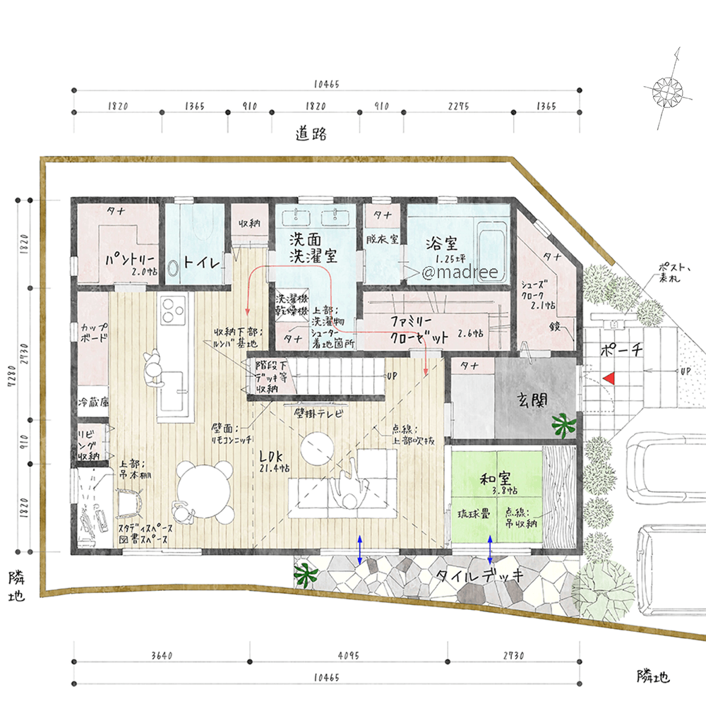 ・玄関は鬼門を避け、東入りとしました。
