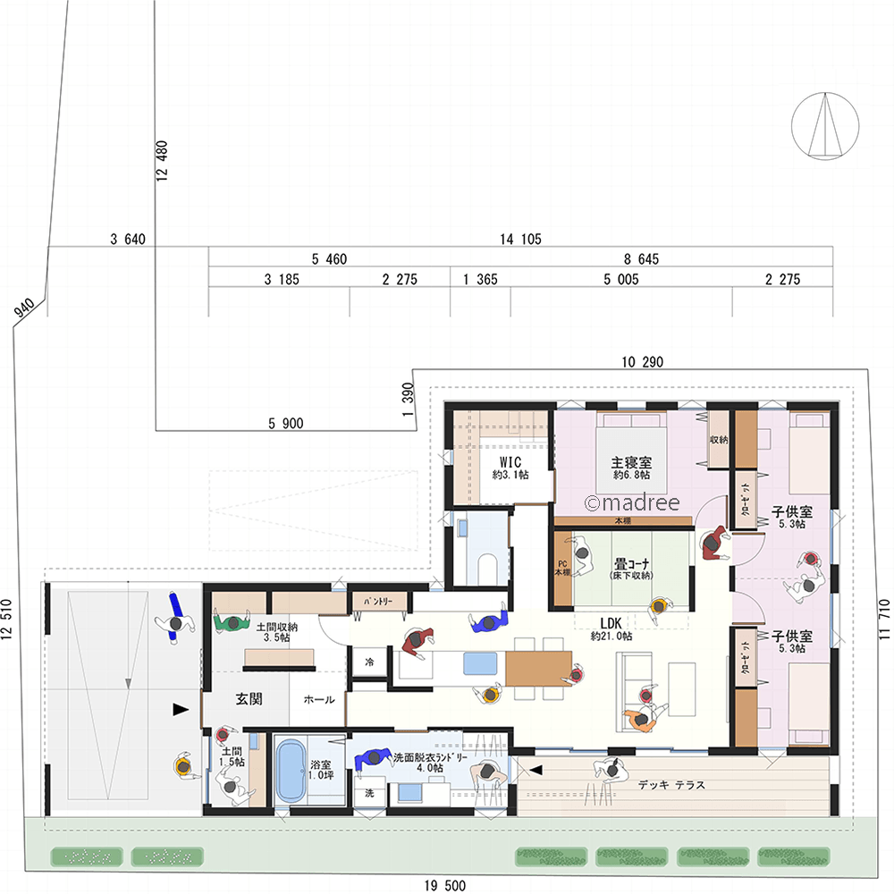 横長デッキと繋がる快適回遊LDK、陽だまりリビングでゆったり過ごす平屋はこのような方におすすめです