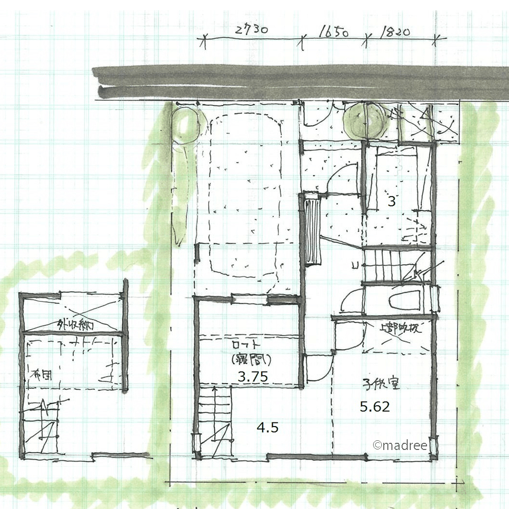 ・階段で上がるロフトを配置し、下部を収納スペースとしました。