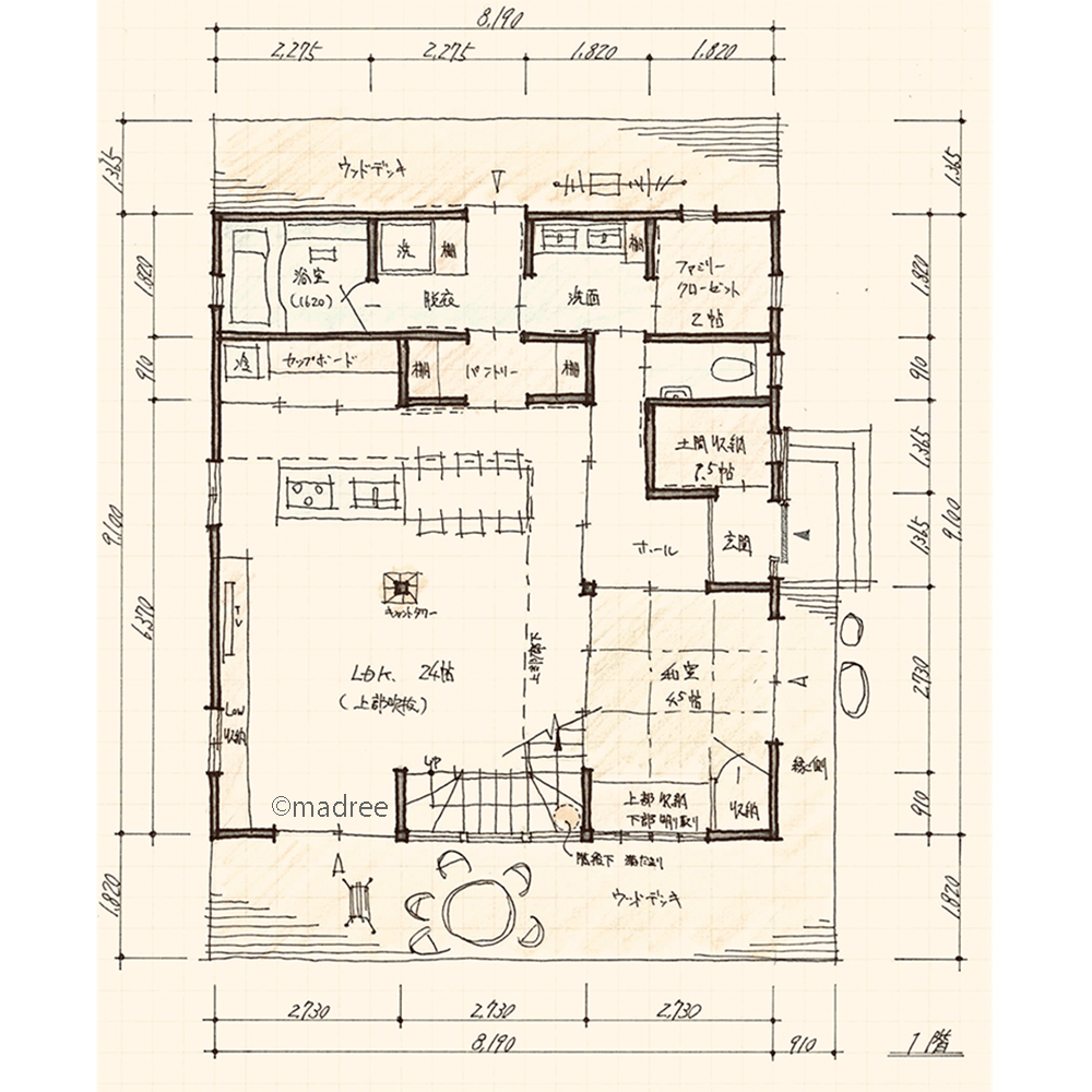 ・リビング12帖、DK12帖の計24帖に光が多く差込むように吹抜を設置し、空間の広がりを演出しました。