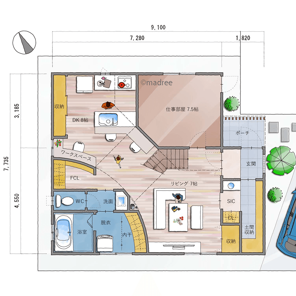 ・風水から水廻り、仕事部屋の位置を考慮しました。