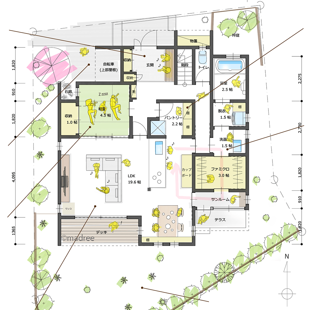 ・リビングでダラダラしている所を隠せるように、玄関からさっと子ども部屋に上がれるようにしたい。
