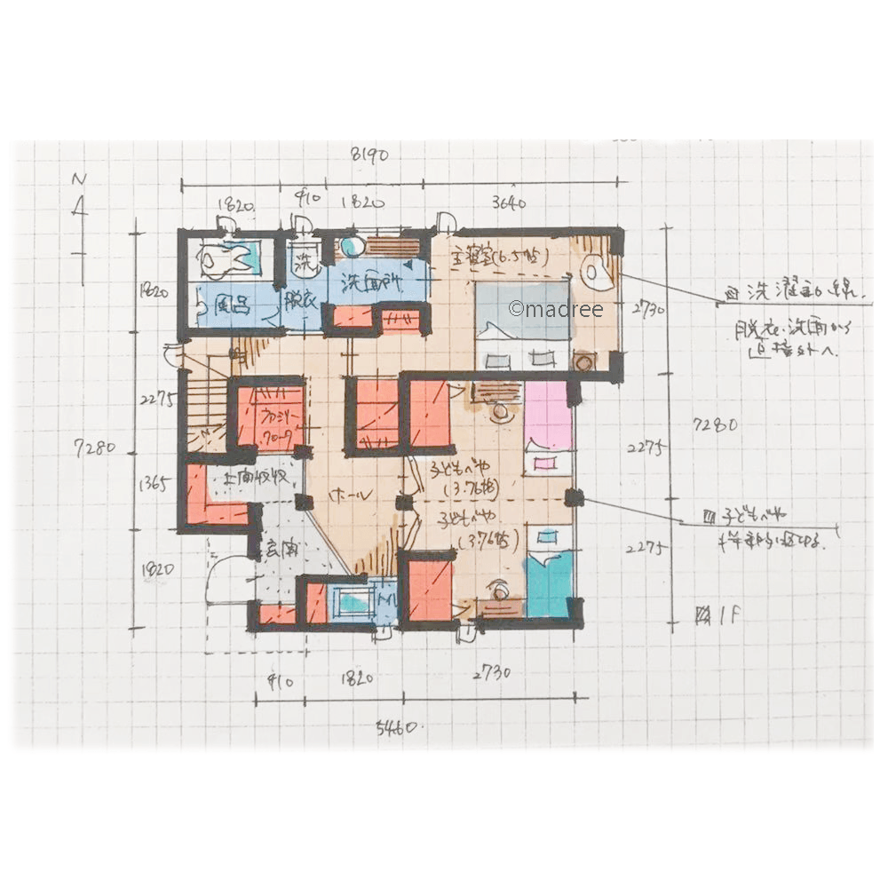 全国の建築家から間取りが集まるmadree(マドリー)で集まった31坪、3LDKの間取りです。2階リビングやL+DKが特徴の注文住宅の間取りです。