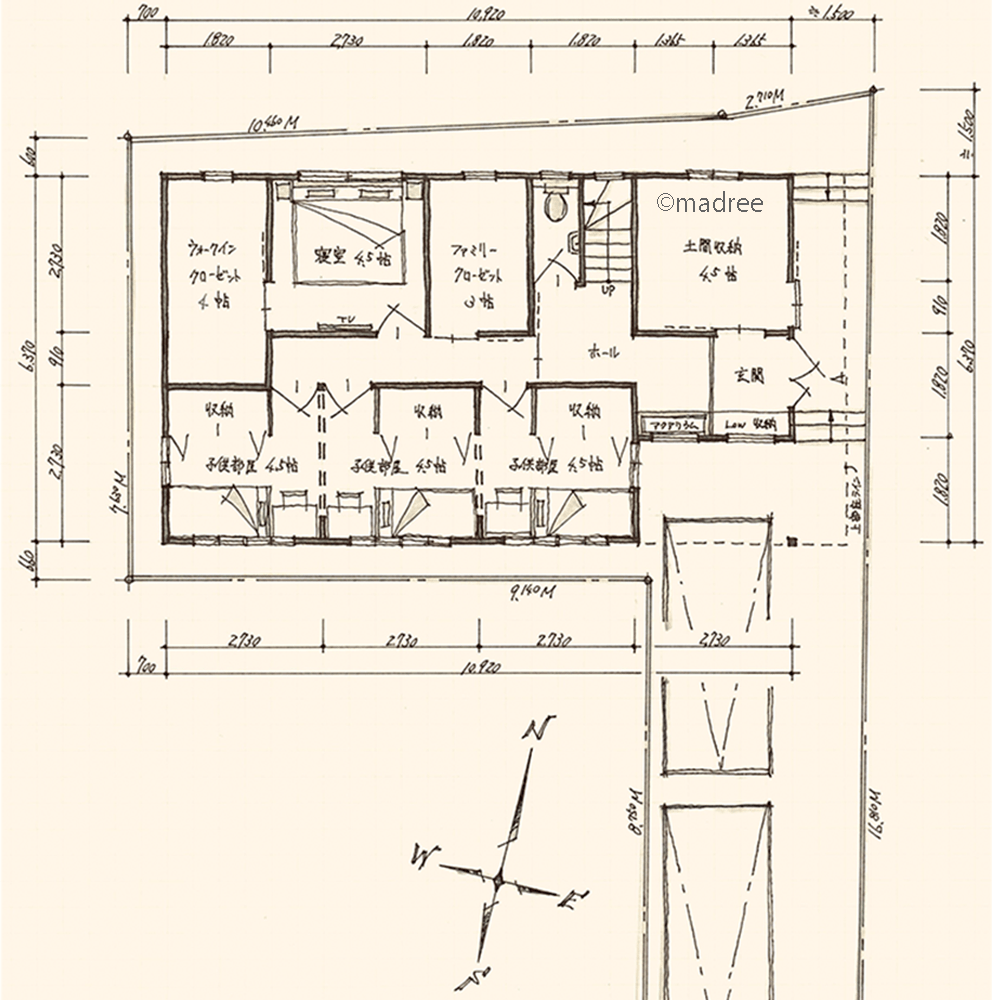・寝室と子ども部屋、ファミリークローゼットを配置。