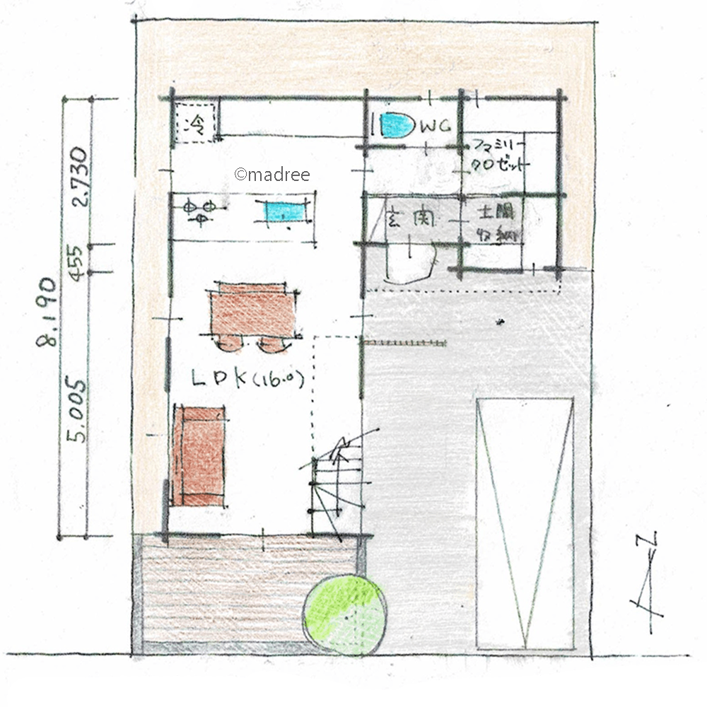 ・LDKを極力広く取るために、1階はLDK・収納・トイレのみの配置としました。