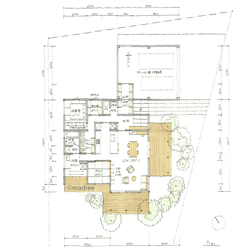 ・農作業場兼用のガレージを設けたい。