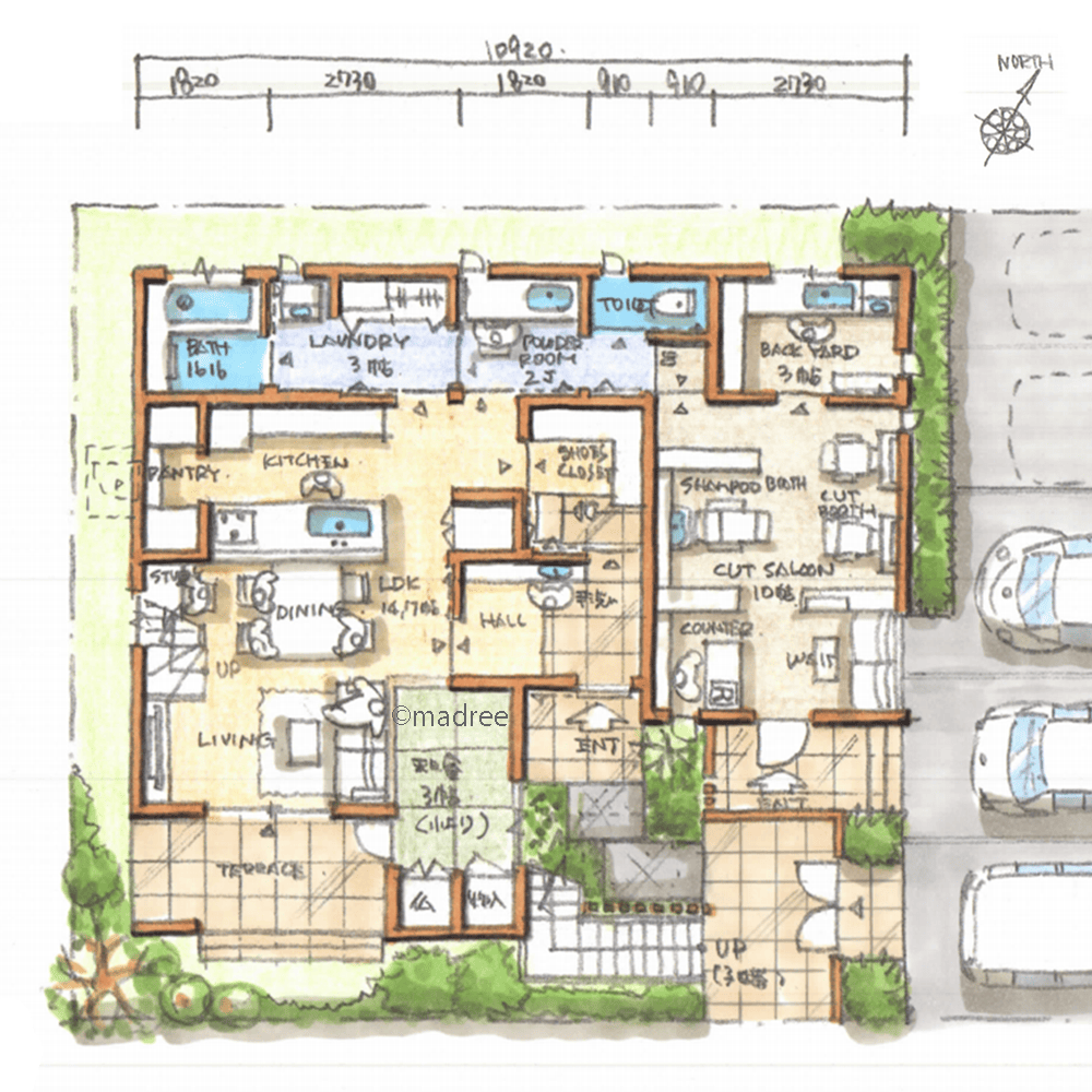 来客とプライベート動線が交わらないので安心、店舗付きの多世帯で住む家はこのような方におすすめです