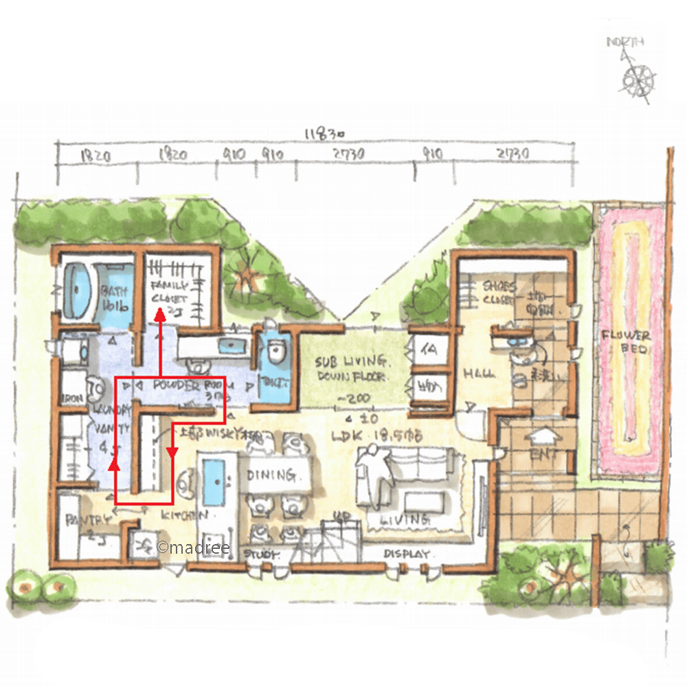 ・パントリーからランドリー脱衣室へ直接入れるので、洗濯が効率的に行えます。