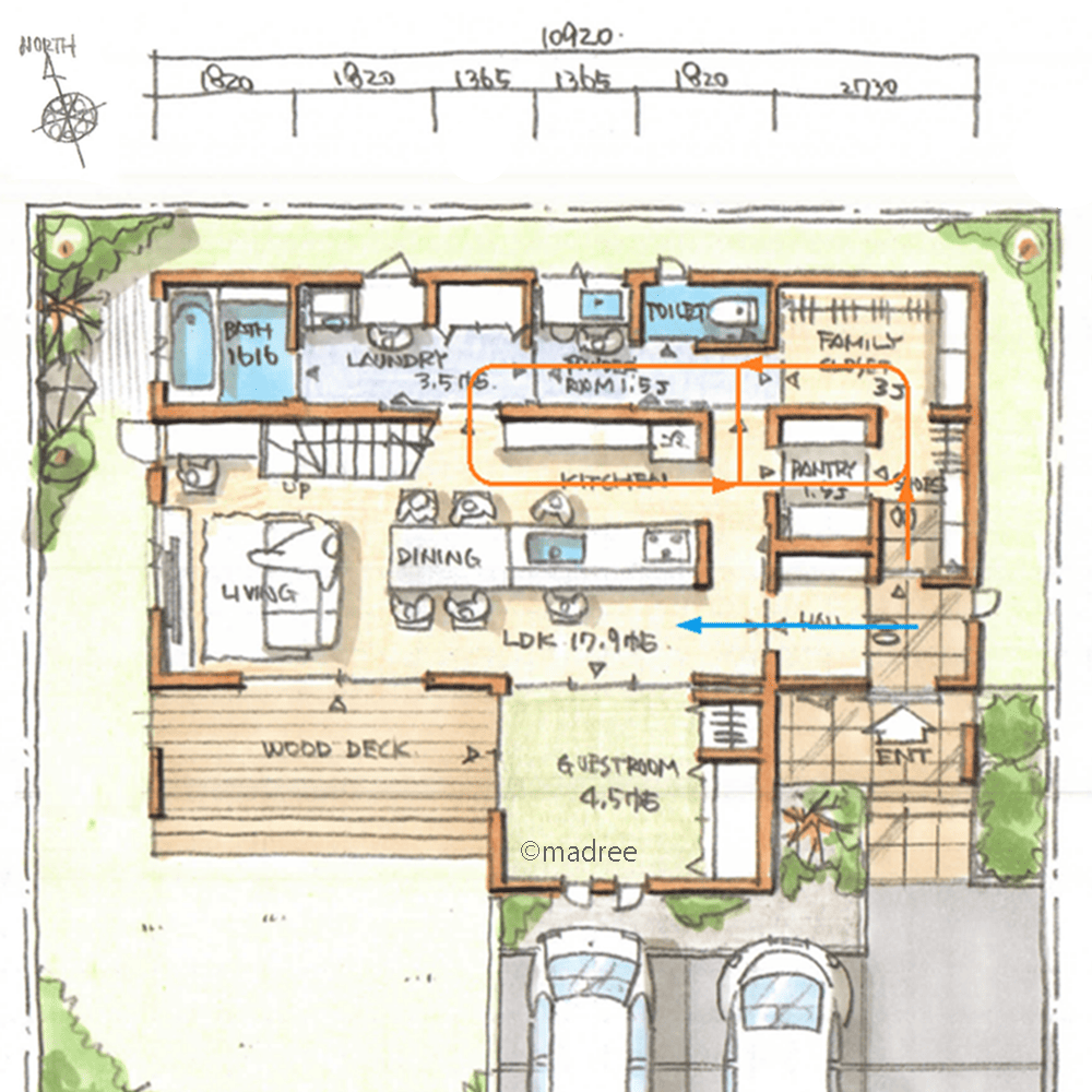 ・家族の帰宅動線は、SIC➡FCL・パントリー➡洗面室・キッチンです。