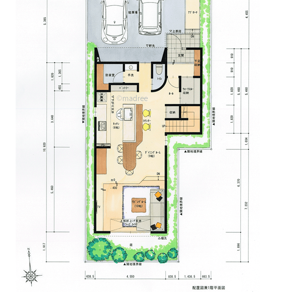・防音室は隣地への影響も考慮し、前面道路側に計画しています。